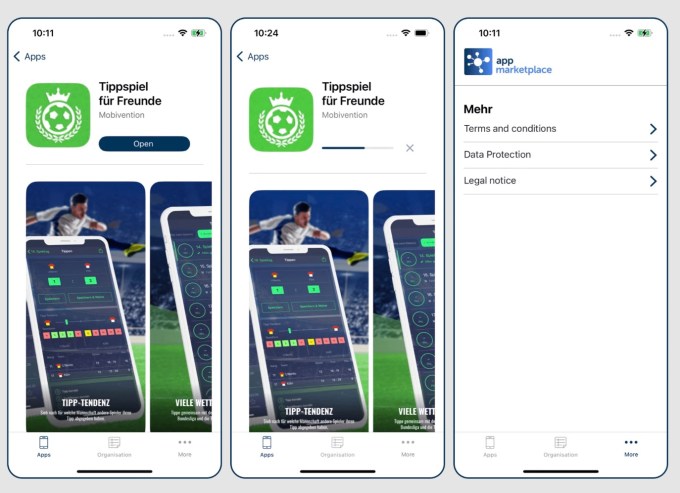 A B2B-focused app store, the Mobivention marketplace allows EU companies to distribute their internal apps that are used by employees, but can’t — or shouldn’t — be published in Apple’s App Store. The company also offers the development of a customized app marketplace for companies that want to offer employees their own app store just for their corporate apps. Larger companies can even license Mobivention’s technology to more deeply customize the app marketplace to their own needs.